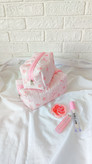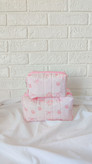 رنگ صورتی ملیح زمینه این پارچه با پاپیون فانتزی و شکوفه های صورتی و نازش حسابی روحیه دخترونه و نازنازی داره 🥺